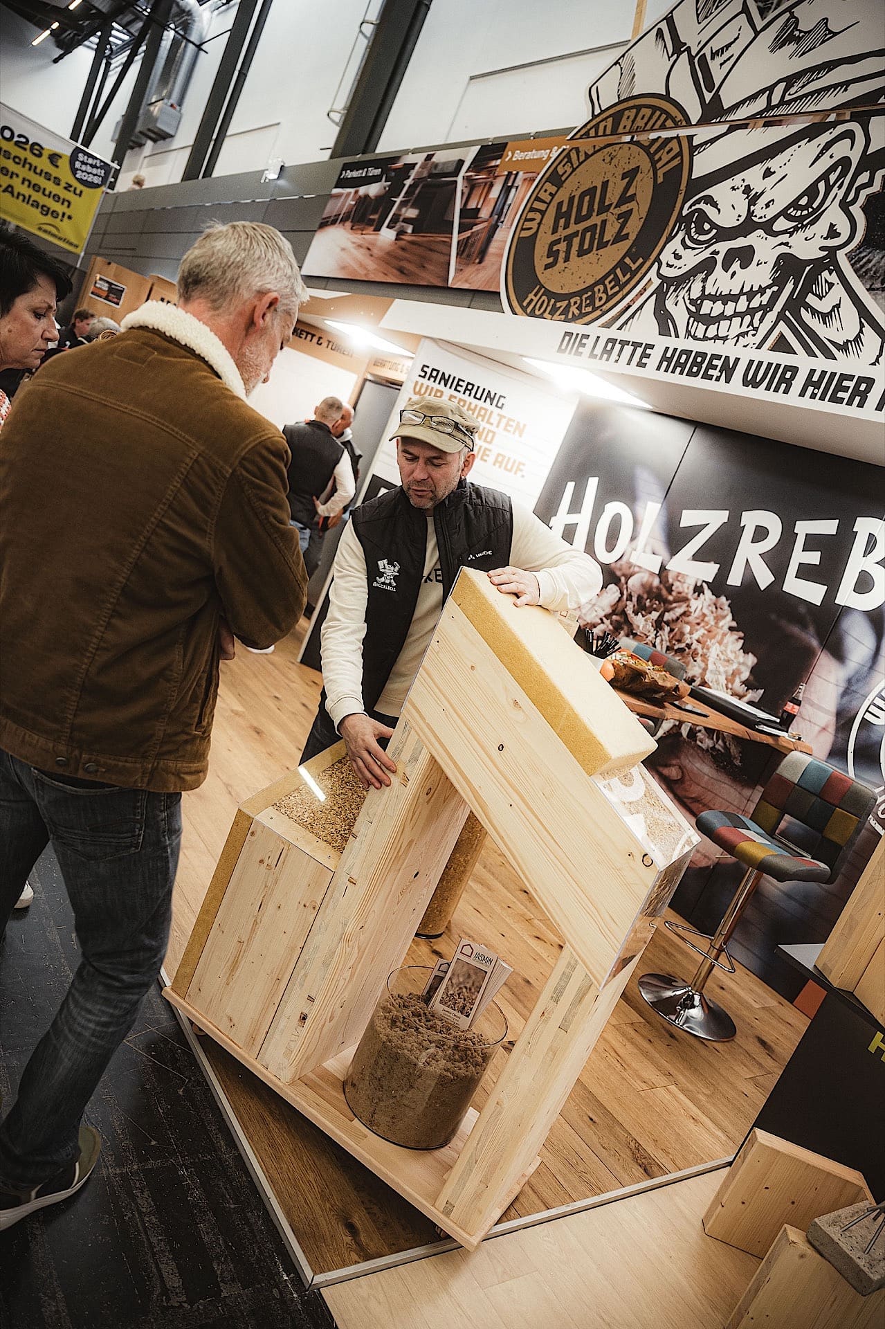 Große Resonanz am Messestand der Holzrebellen auf der diesjährigen HausPlus Messe: Zahlreiche Besucherinnen und Besucher nutzten die Gelegenheit, sich rund um die Themen Holz, Innenraumgestaltung und Sanierung im Hausbau zu informieren und inspirieren zu lassen.